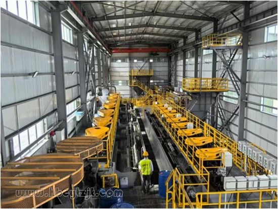 該選銅車間設計年產銅精粉8000噸,年產硫精粉8萬噸,粗選采用了三臺大型高效節能的新型100立浮選機,精選則利用兩臺斜板分級機、一組高效旋流器和一臺塔磨機,以及多級浮選設備、數字化加藥系統等先進工藝和設備,自動化程度高,旨在實現更高的銅、硫回收率和資源綜合利用水平。